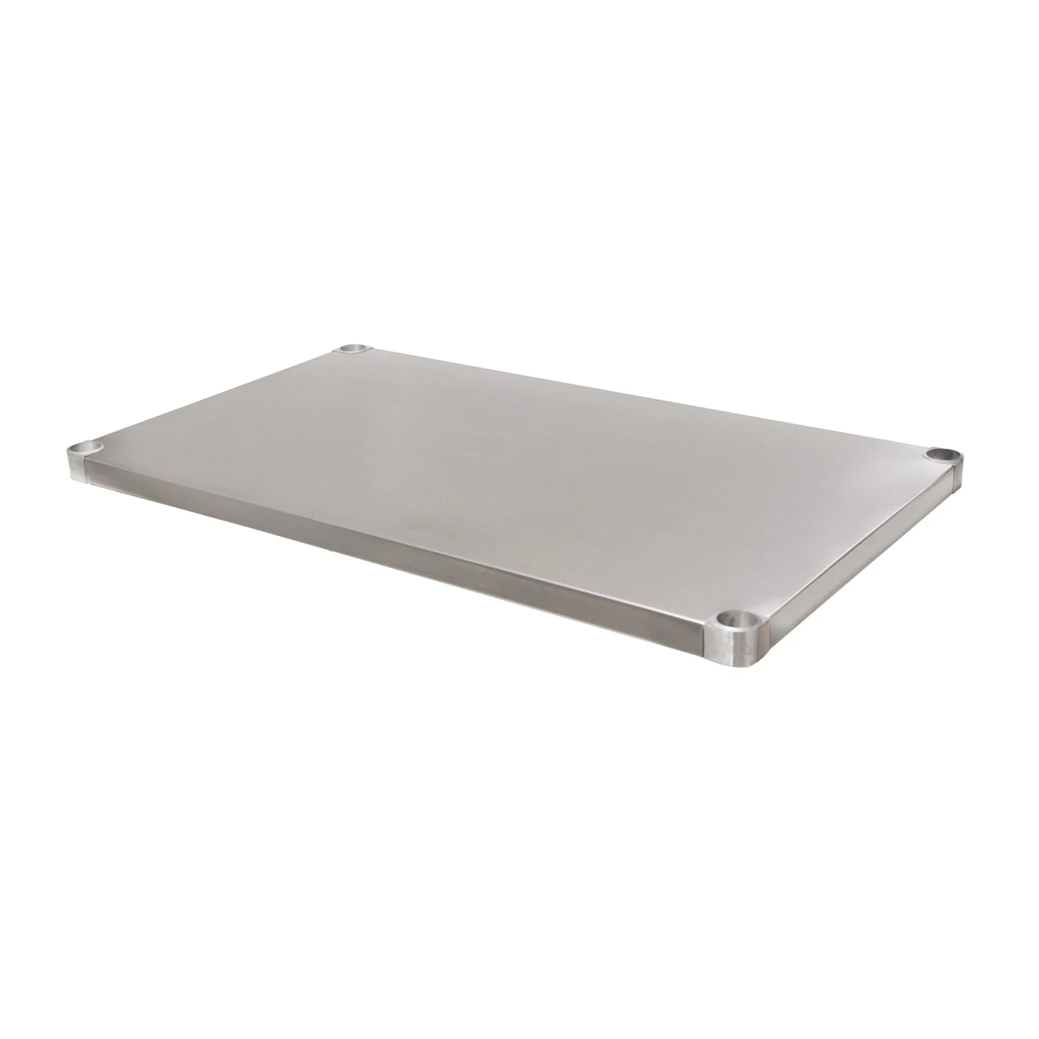 This 30″ x 72″ galvanized steel undershelf from Advance Tabco is perfect for adding storage space to your work table. The die cast leg clamp that secures to the shelf eliminates unsightly nuts and bolts. This adjustable shelf also has a weight capacity of 20 pounds per linear foot.