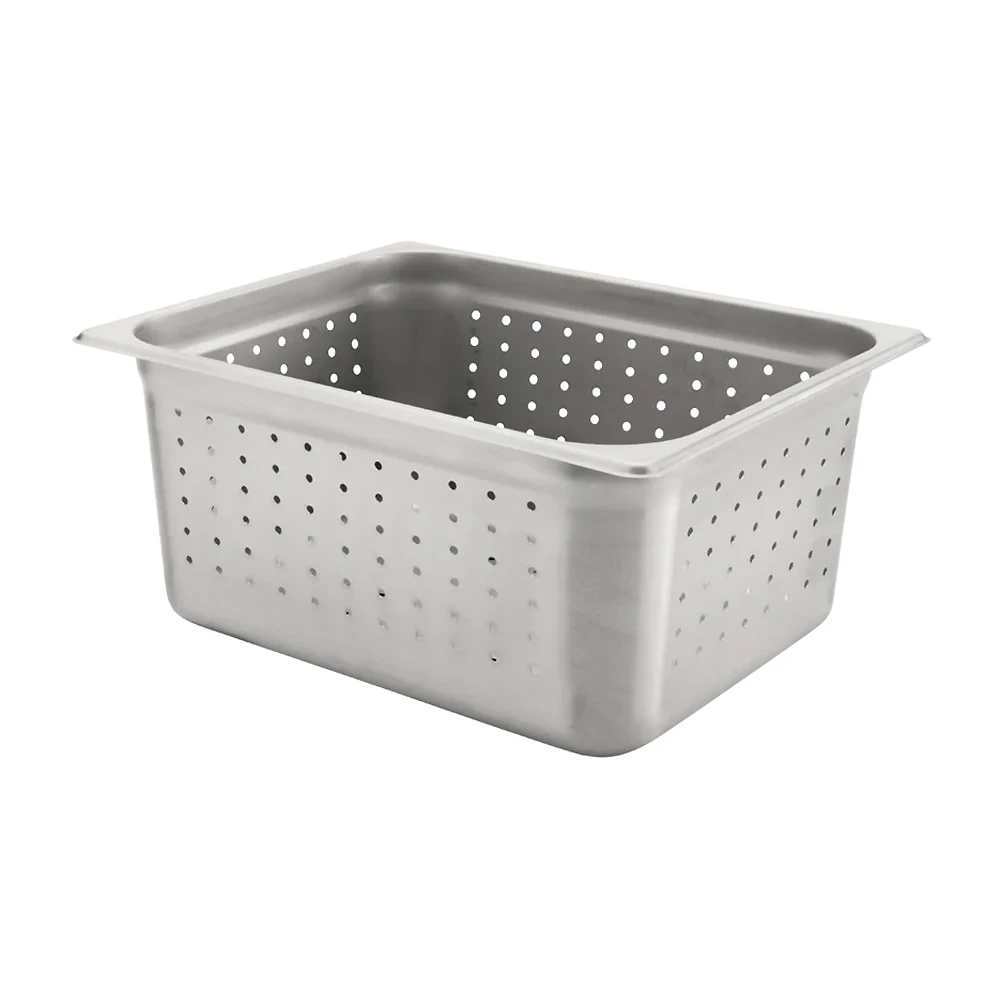 This half size perforated steam pan is 2.5″ deep and features reinforced edges and corners that resist bending.