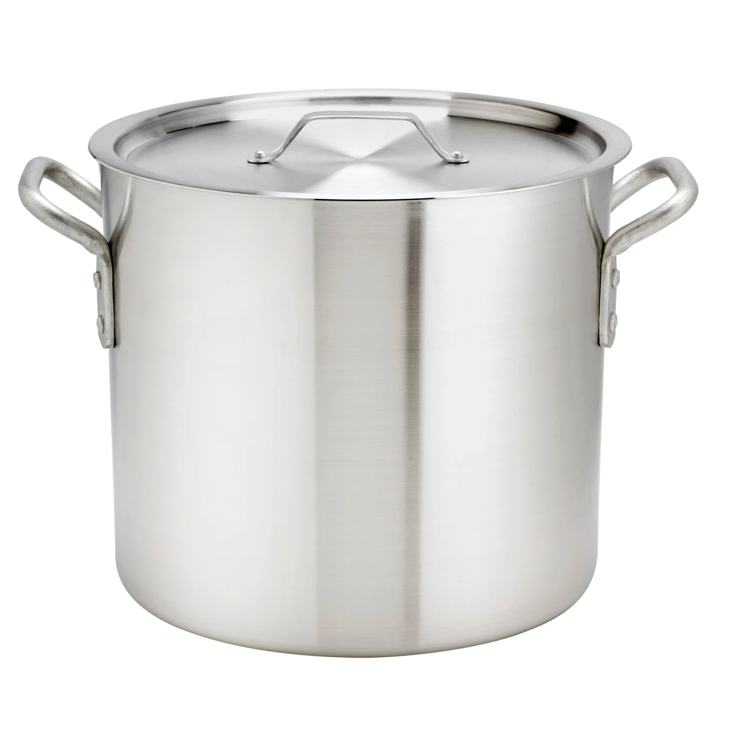 This Thermalloy® 40 quart stock pot is the perfect tool for cooking large batches of soups, stews, or pastas to meet high volume demand. The over‐sized handles are riveted to the sides for a secure grip and the heavy‐duty aluminum bottom provides even heat distribution. For best results, Thermalloy® aluminum cookware should be pre‐seasoned prior to use. Pre‐seasoning Instructions: After cleaning and drying, coat the cookware lightly with vegetable oil or a small amount of shortening. Place on medium heat burner for 10 to 15 minutes until light smoke appears. Turn off heat and allow pan to cool and wipe off excess oil with a paper towel.