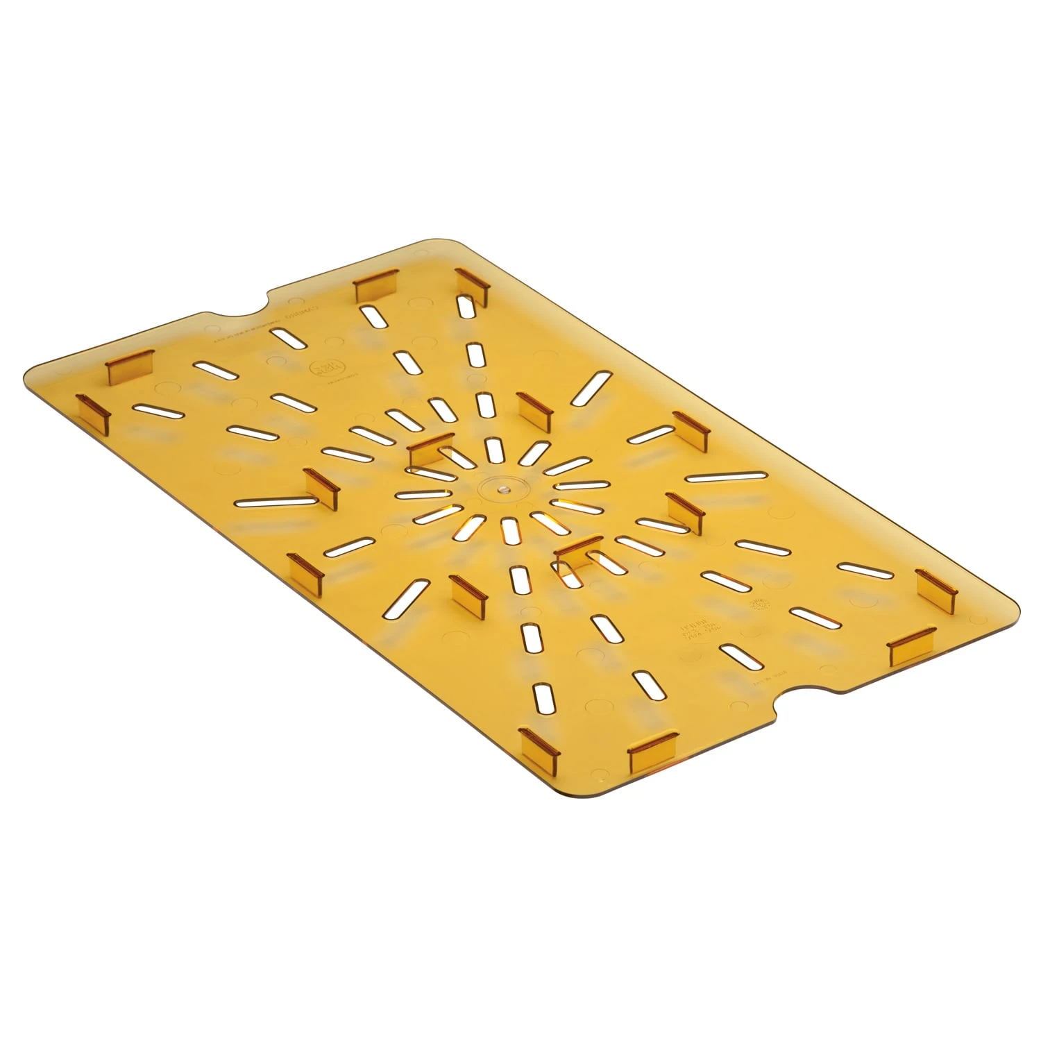 Use this Amber, full size drain shelf to let the contents of your H‐Pan™ drain while being served or transported. The high heat material withstands temperatures from ‐40°F all the way up to 375°F, making it perfect for flash freezing, cooking and reheating; you can use it with microwaves, steam tables, chafing dishes and more.