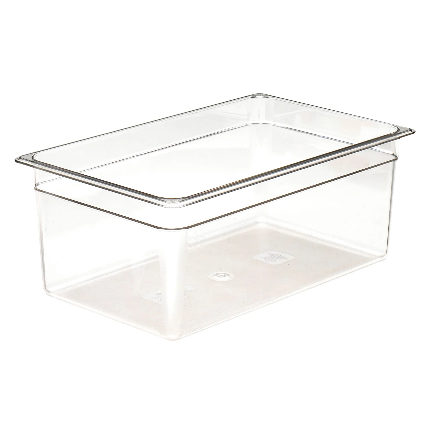 For serving, transporting and storing food all in one unit, use this clear, 8″ high full size food pan made of virtually unbreakable Camwear polycarbonate. This pan will not crack, bend or dent, and it withstands temperatures from ‐40°F to 210°F, making it good for both hot and cold food. The smooth, non‐stick interior makes cleaning easy, and also helps the pan stack neatly without sticking.