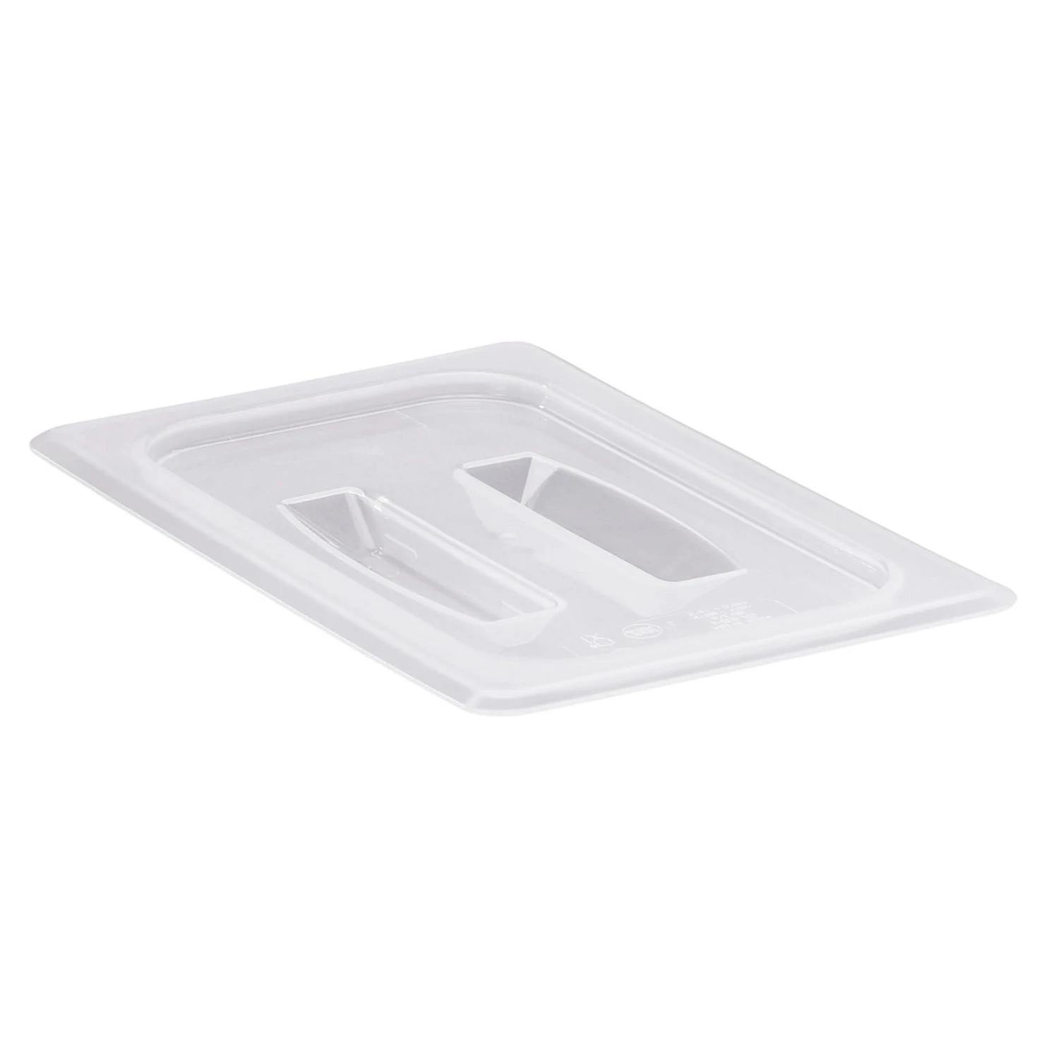 This 1/4 size food pan cover with handle is made of polypropylene material. It’s used to cover food pan contents and reduce risk of cross contamination.