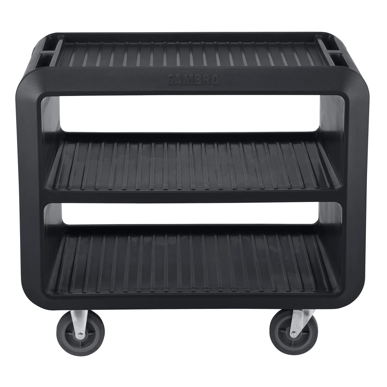 The Cambro Service Cart Pro is the multi‐purpose mobile solution suitable for any food service operation. It has a modern design with superior weight capacity compared to other carts. Use this cart to transport catering pan carriers, coffee dispensers, hot and cold meals, and other front of house supplies. The ergonomic, recessed handles are molded into both ends of the cart aid in maneuvering. The Molded‐in ridges on the surface of the shelves protect from heat, with the one‐piece plastic wiping down easily for cleaning