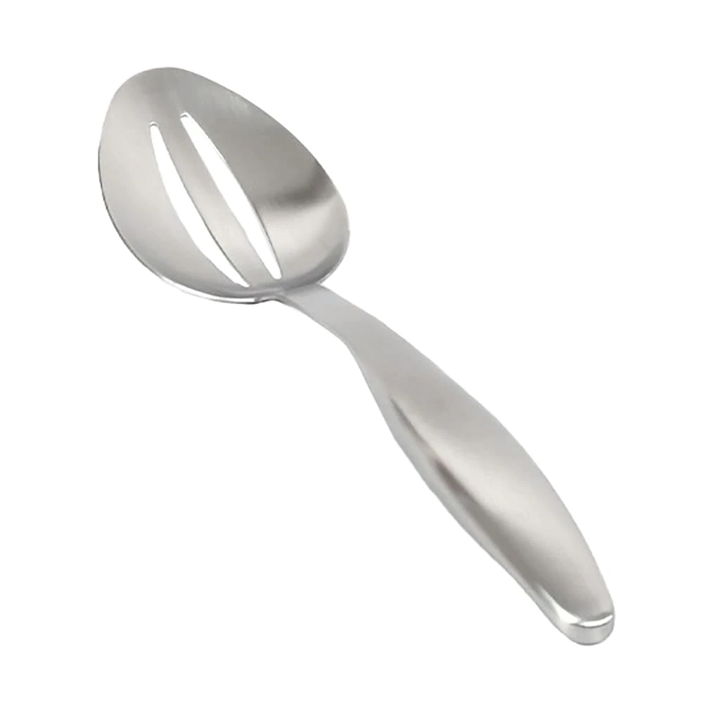 This 10.25″ slotted serving spoon from Front Of The House features a beautiful brushed finish and is perfect for buffets.