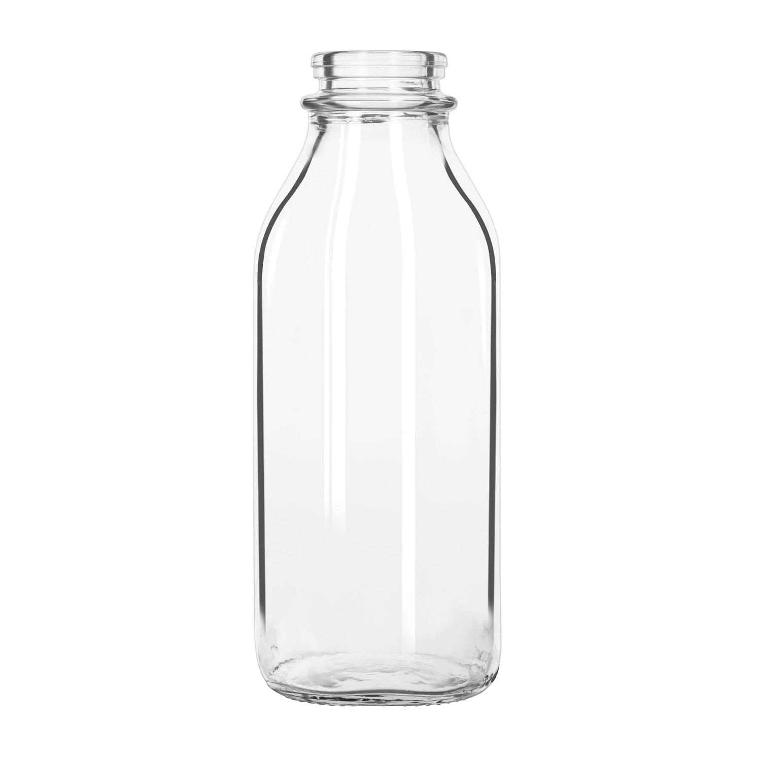 This Libbey® Milk Bottle has a 33.5 Ounce capacity and is made of glass. It is a unique way to serve a variety of beverages.