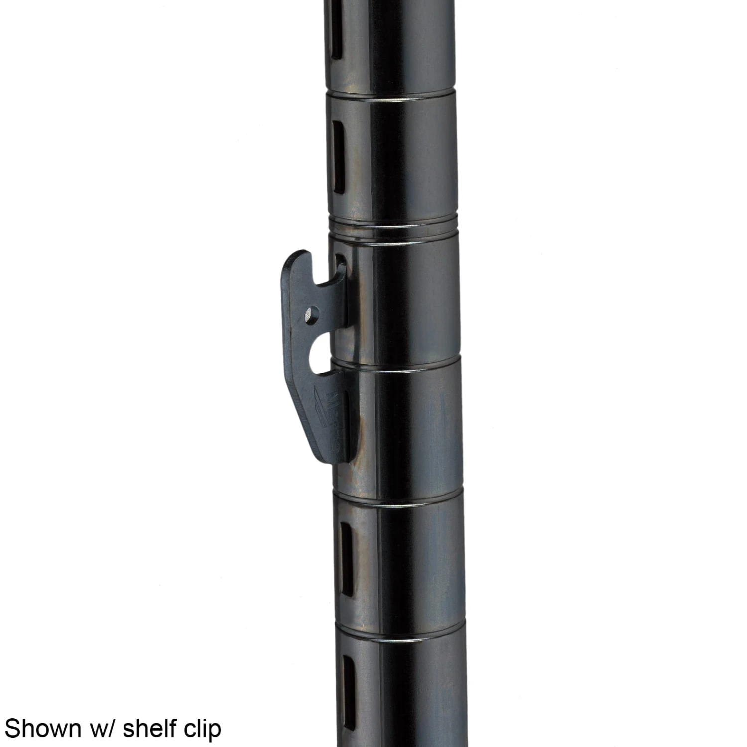 These qwikSLOT posts use shelf clips inserted in slots along the post at 1 inch intervals. This post has a black epoxy finish only work with qwikSLOT shelves.