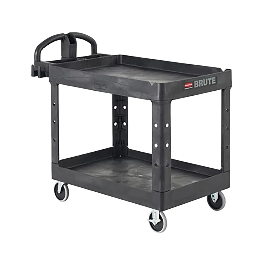 This heavy duty utility cart from Rubbermaid features sturdy, lightweight structural foam construction that Will Not rust, chip, dent or peel, making it perfect for use in any work environment. It’s rounded corners protect your wall and furniture, and the large, 4″ non‐marking swivel casters are easy on your floor and give the cart good maneuverability. Ergonomically designed push handle provides optimum hand placement and push height improving control and worker safety.