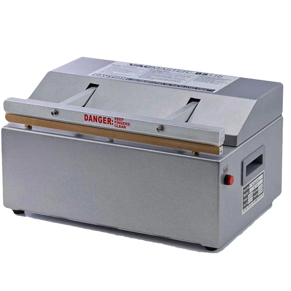 This table top bag sealer from VacMaster® is built with the latest technology, allowing different types of bags to be sealed quickly. It creates a positive, secure seal on both commercial and retail pouches as well as plain poly bags. The 16″ Impulse seal bar completely seals the edge of the bag closed with no preheating required. Great for small to high volume food service operations.