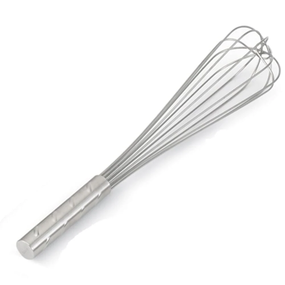 This Vollrath® 18″ French Whip features stainless steel construction and has a one-piece handle. Its thick wires allow for mixing heavy foods, and a center reinforcement wire eliminates product deformation. This whip comes with integral nubs for a better grip. It is NSF Listed.