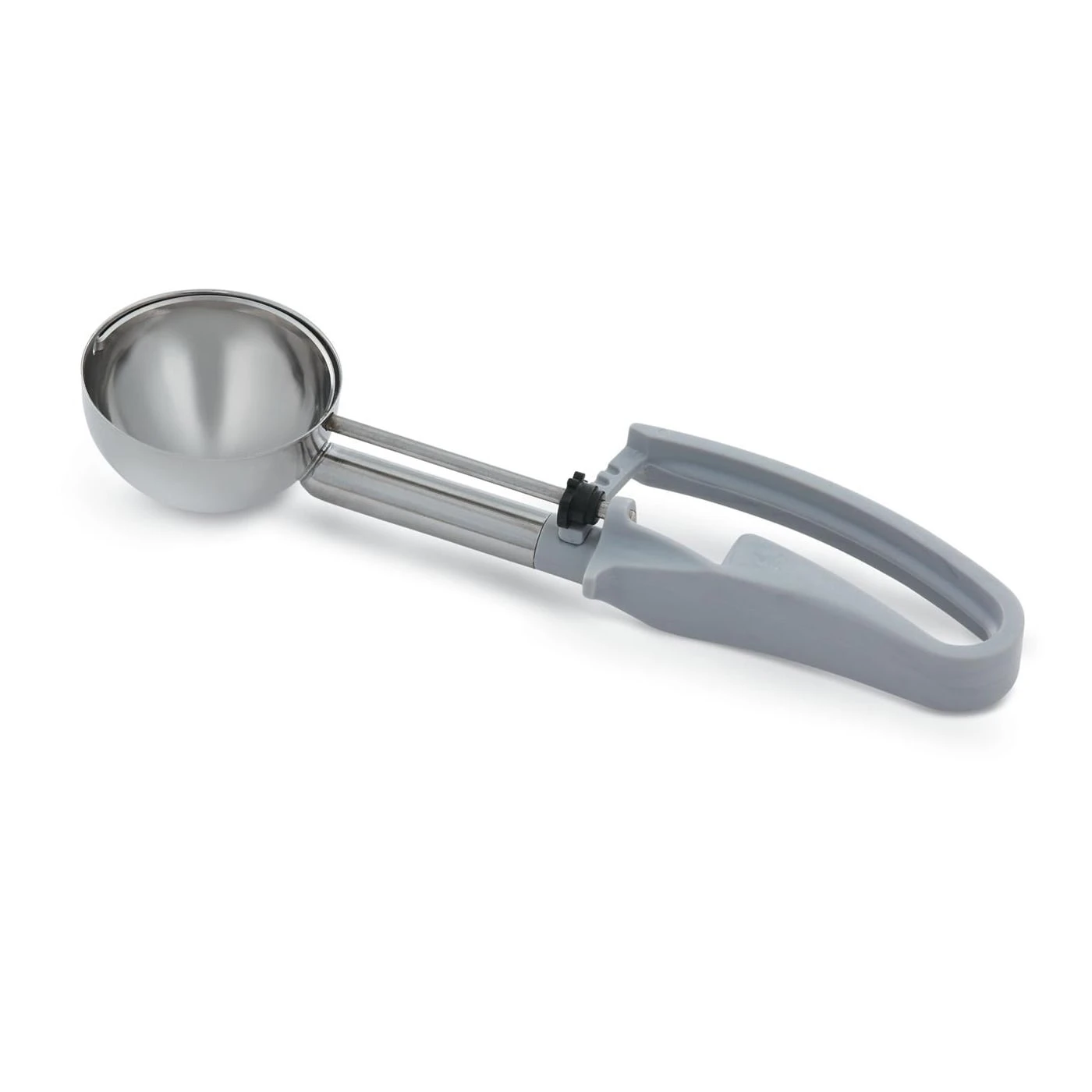 This squeeze disher from Vollrath® features a universal handle design that is equally comfortable for right or left handed users. This disher has an extended length handle that works with all steam table pan depths and the gray color-coded handle allows for easy size identification.