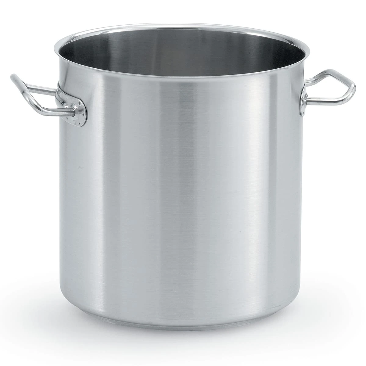 This 18 quart stock pot from Vollrath® is part of the Intrigue® Collection which is a commercial line of heavy-duty stainless steel cookware. The tall and narrow shape allows liquids to bubble up through the food, extracting maximum flavor. Intrigue® Cookware is ideal for kitchen or demonstration cooking.