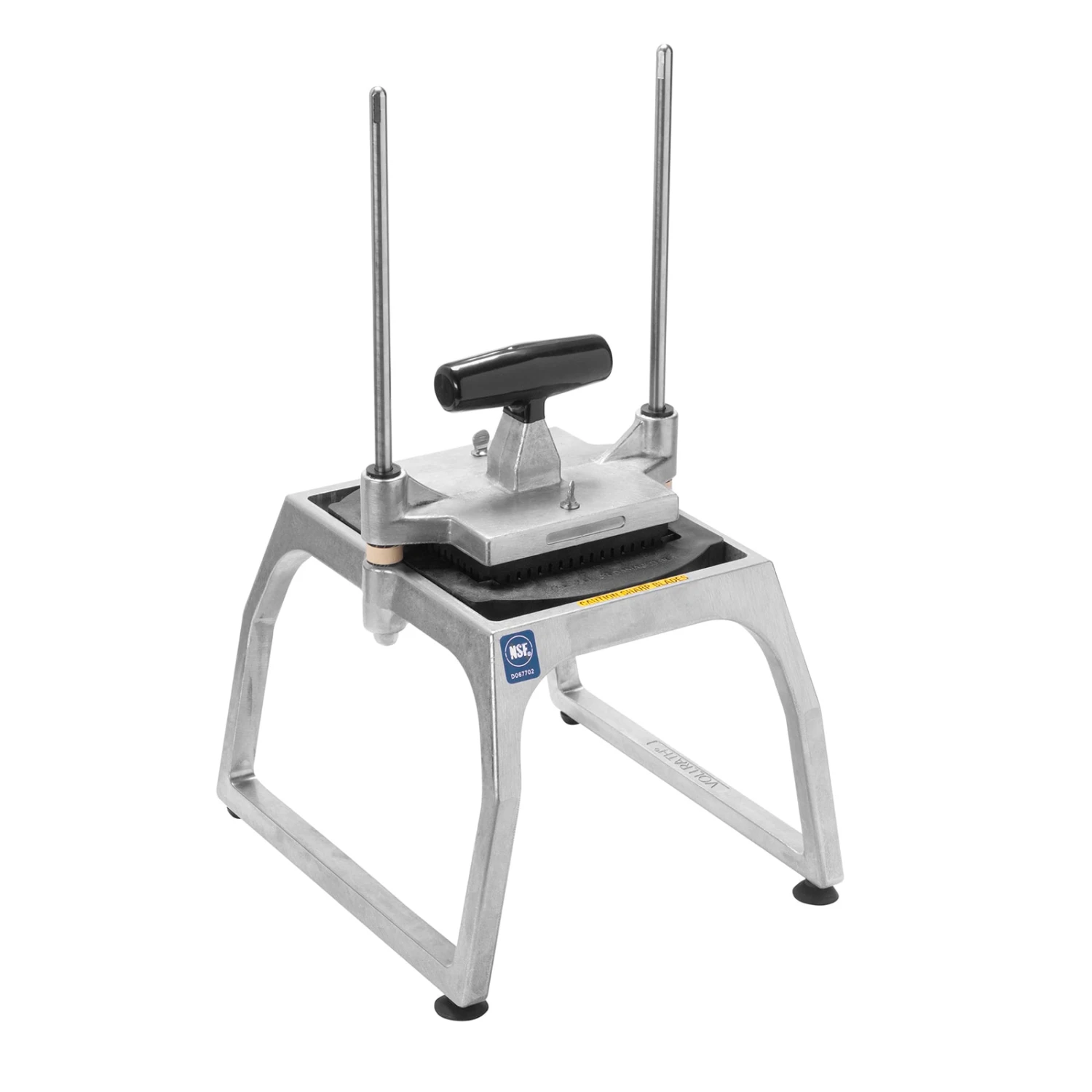 This Instacut™ 5.1 Manual Food Processor from Vollrath® features stainless steel serrated blades that cleanly cut a wide variety of fruits and vegetables to reduce bruising and waste, and improve food presentation. The pop-in, pop-out blade assemblies make it easy and efficient to switch operations so you can slice, dice, wedge and core all in one device! The cast aluminum sled-leg base design is lightweight and strong and the rubber feet help keep the equipment in place.