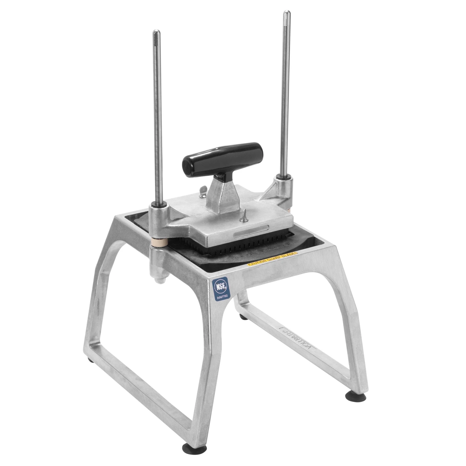 This Instacut™ 5.1 Manual Food Processor from Vollrath® features stainless steel serrated blades that cleanly cut a wide variety of fruits and vegetables to reduce bruising and waste, and improve food presentation. The pop-in, pop-out blade assemblies make it easy and efficient to switch operations so you can slice, dice, wedge and core all in one device! The cast aluminum sled-leg base design is lightweight and strong and the rubber feet help keep the equipment in place.