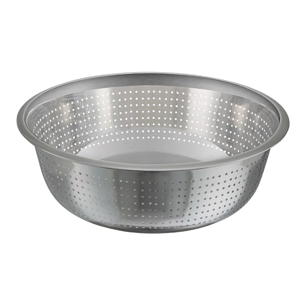 This 15″ Chinese Style Colander from Winco features stainless steel construction and a wide, smooth-edge rim for safe and secure grip.