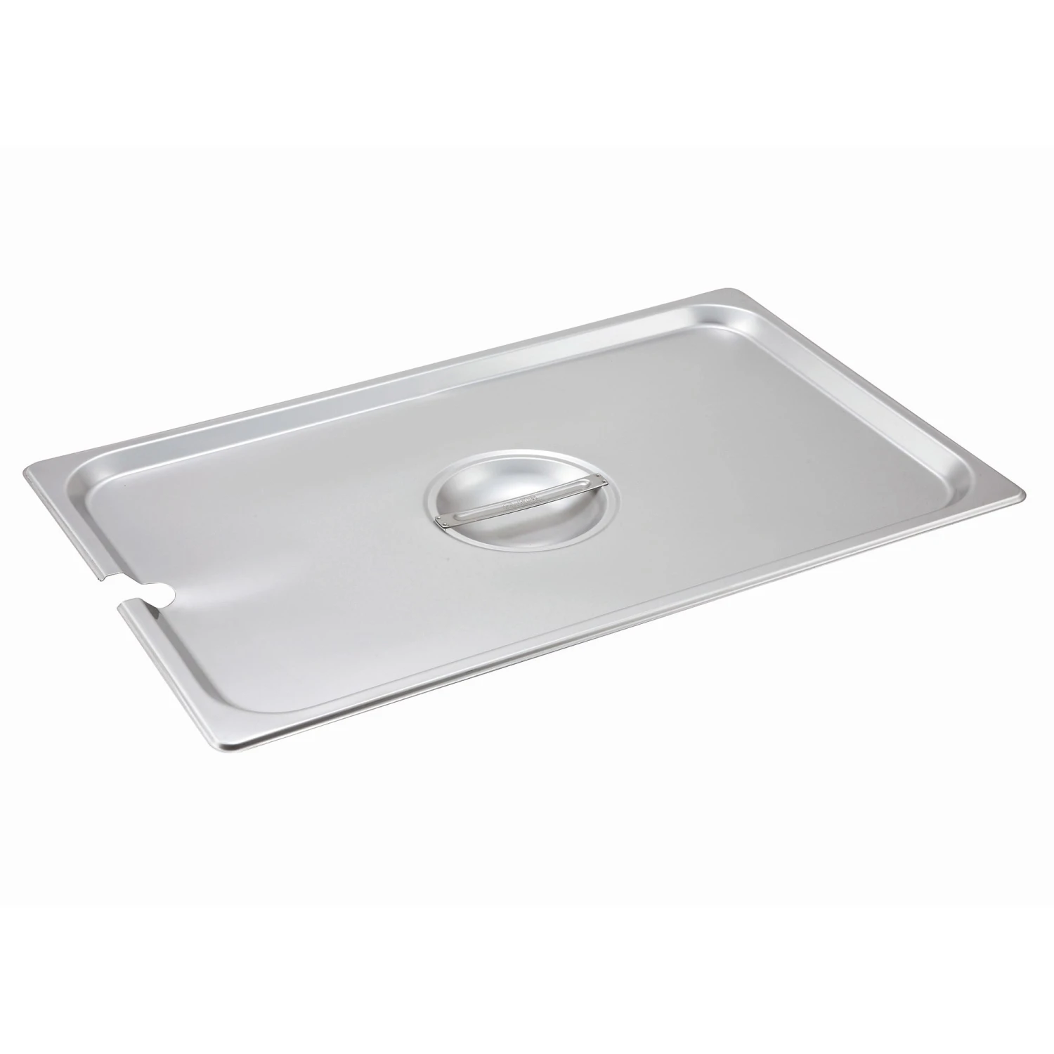 This cover is for use with full‐size pans food pans. It has a slotted design to allow for spoon or ladle access.